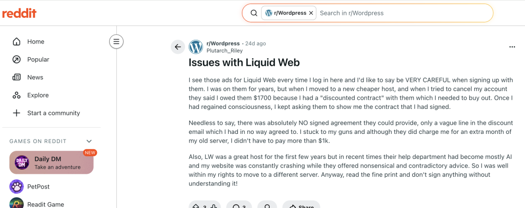Despite its drawbacks, Liquid Web is still a strong option for some users.