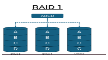 Example: RAID 0 with 3 drives splits data across all three for maximum speed.